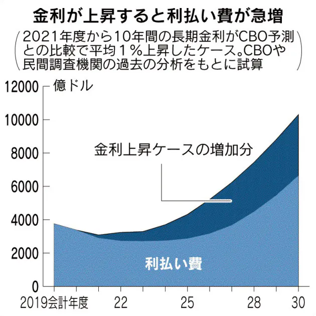 新型コロナウイルス対策で財政が悪化する米国で、ゼロ金利頼みの財政運営が鮮明だ。1%の金利上昇で今後10年の利払いが2兆ドル(210兆円)規模で膨らむ可能性もある。戦後の財政再建の成功例にならえば、経済の底割れ回避と財政安定の両立には米連邦準備理事会(FRB)によるゼロ金利の長期化が欠かせない。資産バブルの副作用もにらみつつ綱渡りが続く。