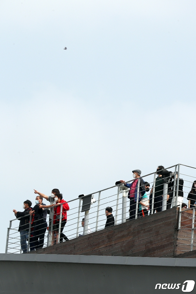 (파주=뉴스1) 황기선 기자 = 추석인 1일 오전 경기 파주시 임진각에서 시민들이 북녁을 바라보고 있다 2020.10.1/뉴스1