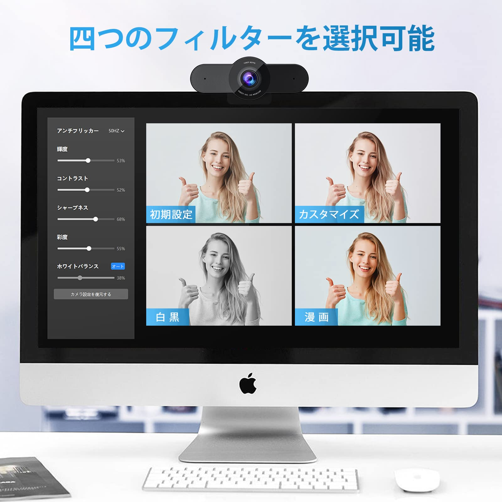 また、オートフォーカス機能、75°の視野角に対応したレンズを搭載。カメラ範囲に映った人物に対し自動でピントを合わせることで、常に鮮明な映像を届けることが出来ます。また、ウェブカメラはライバシーモード機能を搭載しており、盗撮を防止し、個人的なプライバシーを保護することが可能です。生放送、オンライン会議、ビデオ通話、YouTubeにおける生配信など、幅広い場面で活躍します。