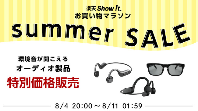 楽天市場「Show !t」ビッグサマーセール!8月4日(木)20時から、環境音を聞きながら音楽を楽しめるオーディオ製品をセール価格で販売。さらに、ポイント最大10倍!楽天お買い物マラソンに参加。:時事ドットコム - 時事通信ニュース