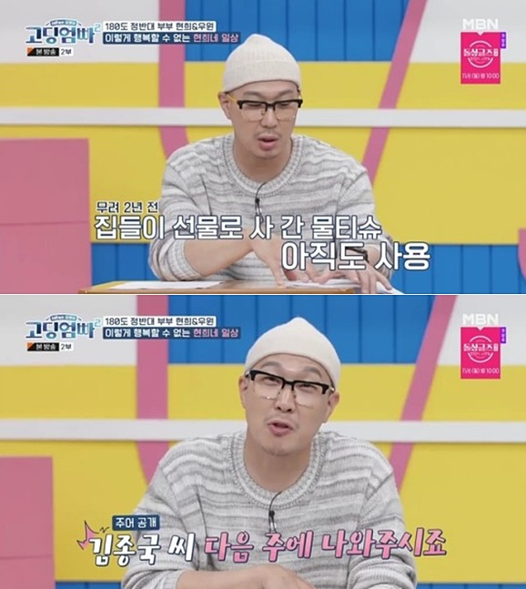 그러자 하하는 "제 주변에도 있다. 2년 전 집들이 때 사 갔던 물티슈를 아직도 쓰고 있더라"고 말해 누구인지 궁금증을 자아냈다.