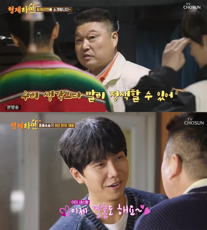 지난 22일 TV조선·디스커버리 채널 코리아 예능프로그램 '형제라면'에서는 강호동과 이승기가 서로에게 반가움을 표했다.
