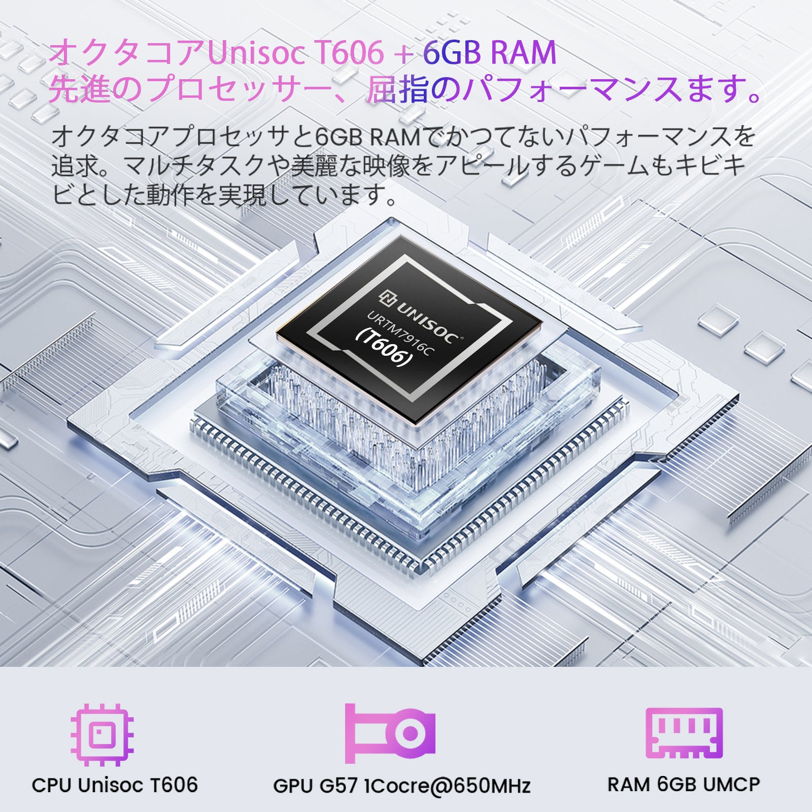 Blackview Tab7ProタブレットはUnisoc T606プロセッサを搭載し、先進の12nm技術を採用することで性能と消費電力のバランスを実現。 また、デュアル4G LTE通話にも対応し、TD-LTEとFDD-LTEの4Gネットワークにも対応し、仕事と生活を自由に切り替えられます。 6580mAhの大容量バッテリーを搭載し、映画鑑賞、ドラマ鑑賞、音楽鑑賞など長時間でも安心してご利用いただけます。