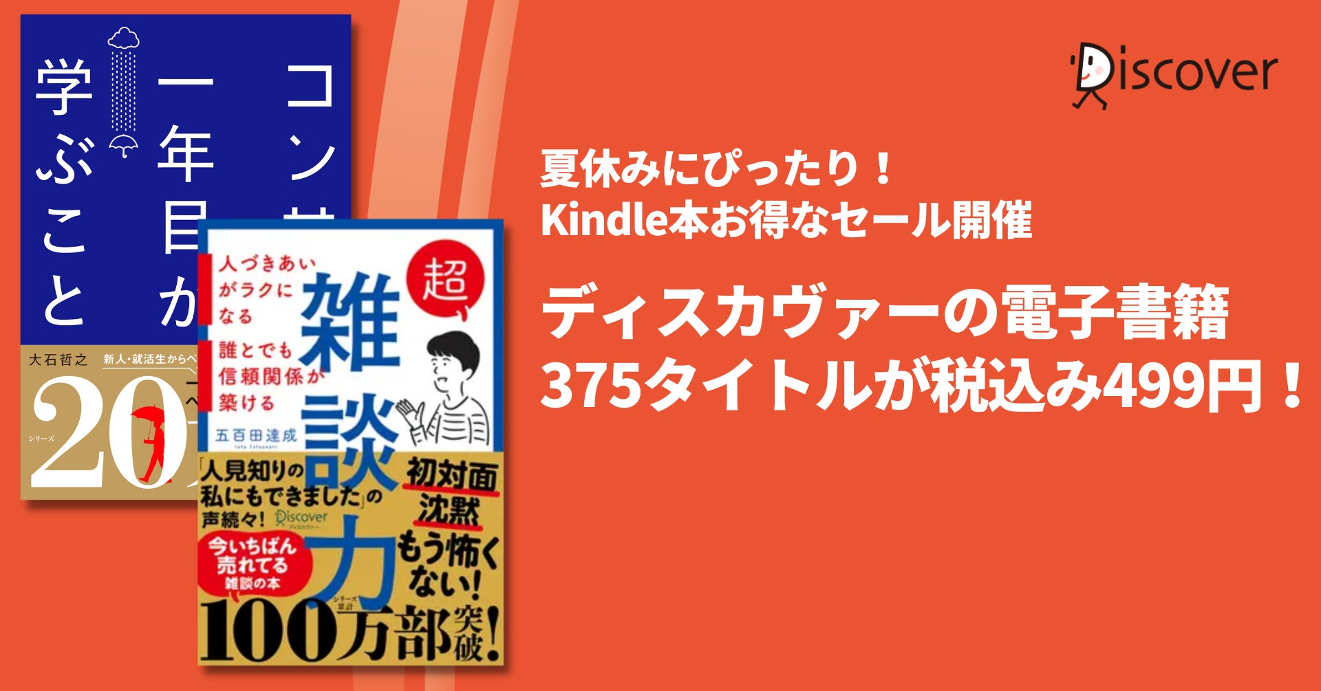 8/10よりKindleにて、ディスカヴァーの電子書籍375タイトルが一律499円になる夏休みセールを開催しています。