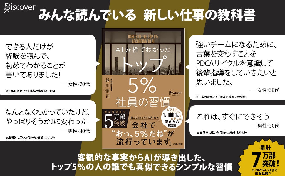 15万部を突破した、ビジネスパーソン必読のベストセラー『AI分析でわかった トップ5%社員の習慣』や、雑談が苦手な人から絶大な支持を得ている15万部突破のベストセラー『超雑談力』など、ディスカヴァーの人気タイトルが対象になっています。