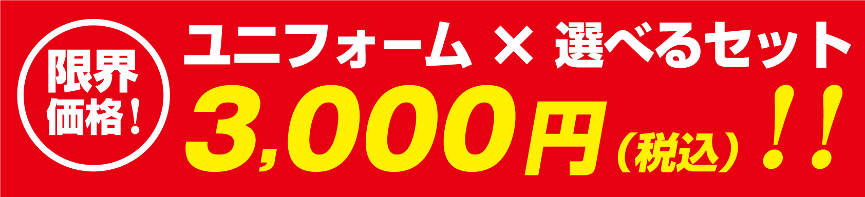 限界価格を突破!2種類のセットが破格の3,000円(税込)で購入できるチャンス!第一弾はお楽しみユニフォーム×選べるタオルマフラー!
